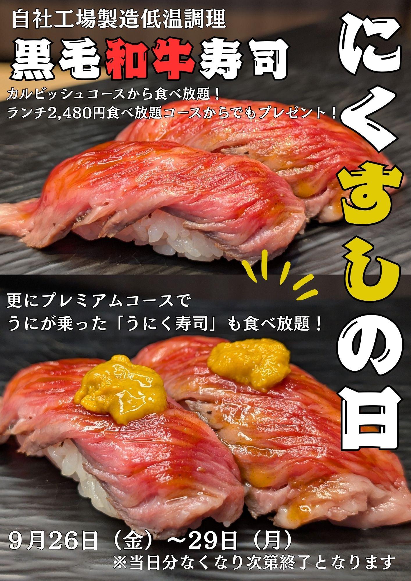 9月もプレミアムコースでうにく寿司食べ放題も新登場!